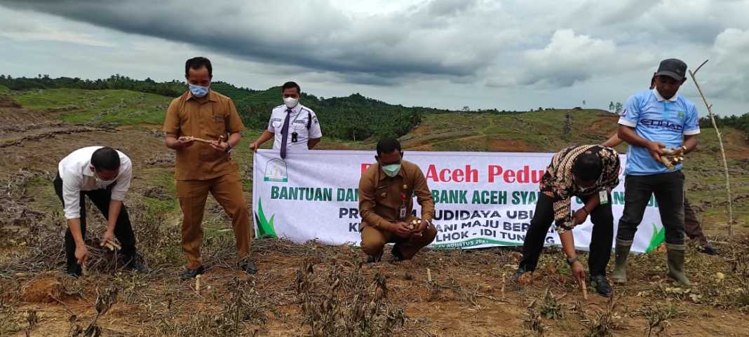 Bupati Aceh Timur juga turut berterimakasih kepada Bank Aceh dan kepada perangkat Desa Seuneubok Rambong atas budidaya bibit ubi lokal ini.