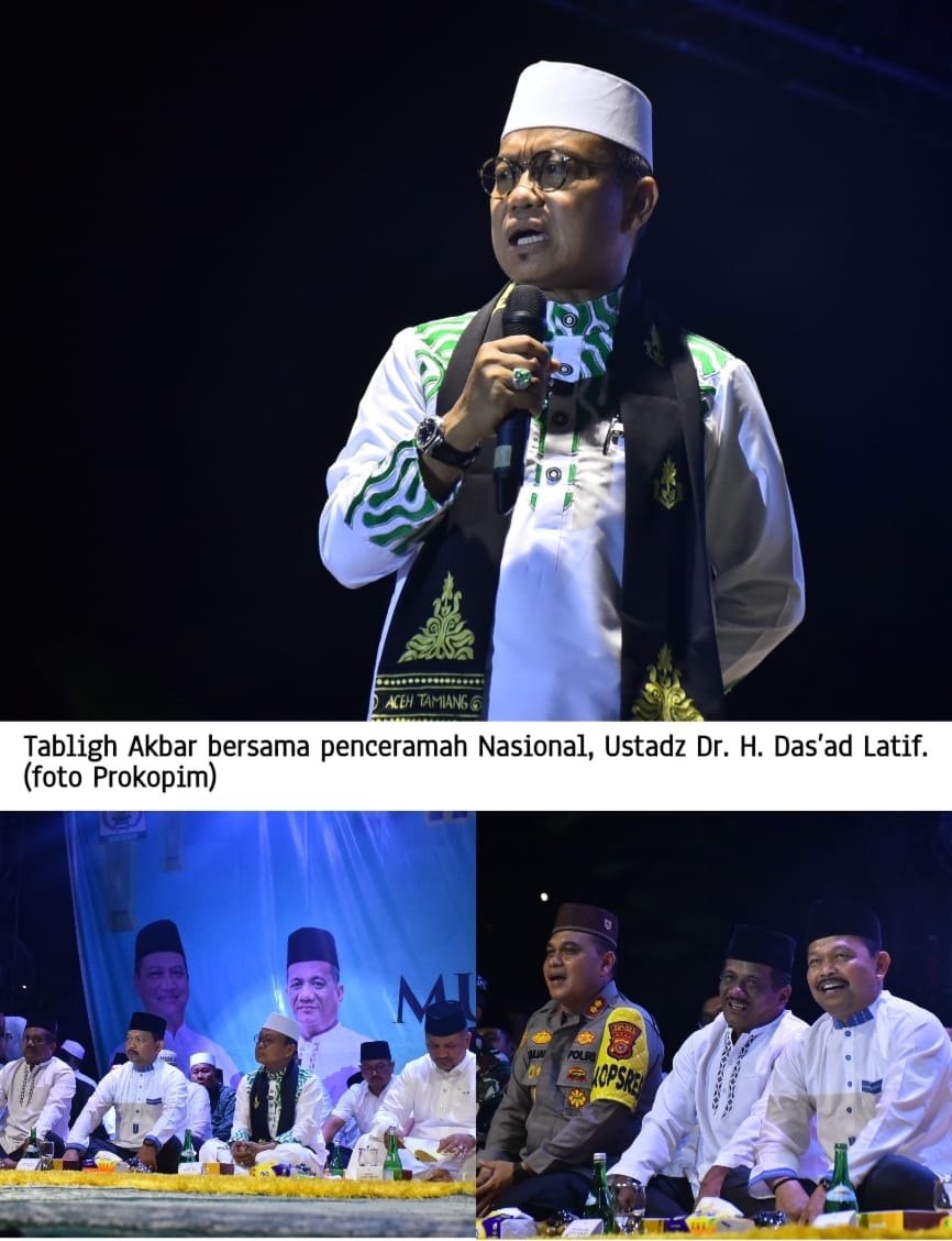 Mudanews – Aceh Tamiang | Peringatan Maulid Nabi Muhammad SAW 1447 H di Kabupaten Aceh Tamiang berlangsung semarak. Ribuan masyarakat tumpah ruah memenuhi Lapangan Tribun Kantor Bupati, Rabu(19/11/25), untuk mengikuti Tabligh Akbar bersama penceramah nasional, Ustadz Dr. H. Das’ad Latif.