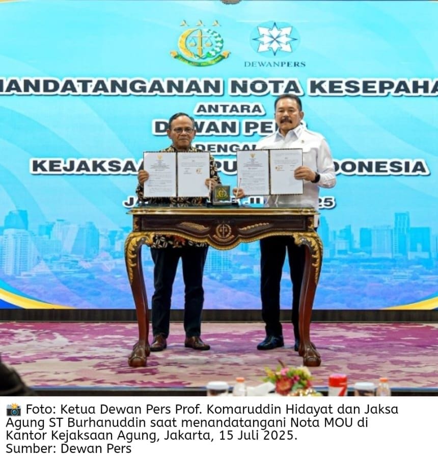 Mudanews.com-Jakarta | Kejaksaan Agung RI dan Dewan Pers menandatangani Nota Kesepahaman (MoU) pada Selasa, 15 Juli 2025. Kolaborasi ini bukan sekadar seremoni kelembagaan, melainkan penegasan arah baru dalam memperkuat kemerdekaan pers sekaligus menjaga transparansi penegakan hukum di Indonesia.