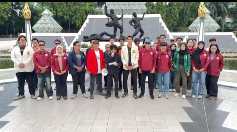 Mudanews.com Surabaya | – Penetapan Soeharto sebagai Pahlawan Nasional lewat Keppres Nomor 116/TK/Tahun 2025 mendapat penolakan keras dari BEM Nusantara Surabaya Raya. Rabu (19/11/2025), puluhan mahasiswa menggelar aksi di Tugu Pahlawan, Surabaya, menuding keputusan tersebut sebagai langkah yang mencederai ingatan sejarah bangsa.