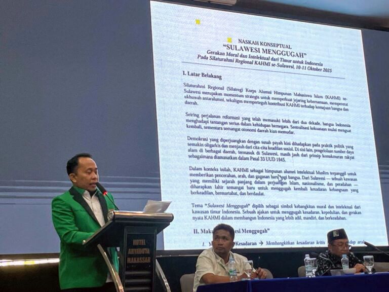 “Dari Tanah Sulawesi — tanah peradaban, tanah pejuang, tanah ilmu — kami menggugah nurani bangsa agar pembangunan tidak kehilangan arah dan nilai,” kutipan itu menggema di aula, disambut tepuk tangan panjang para peserta.