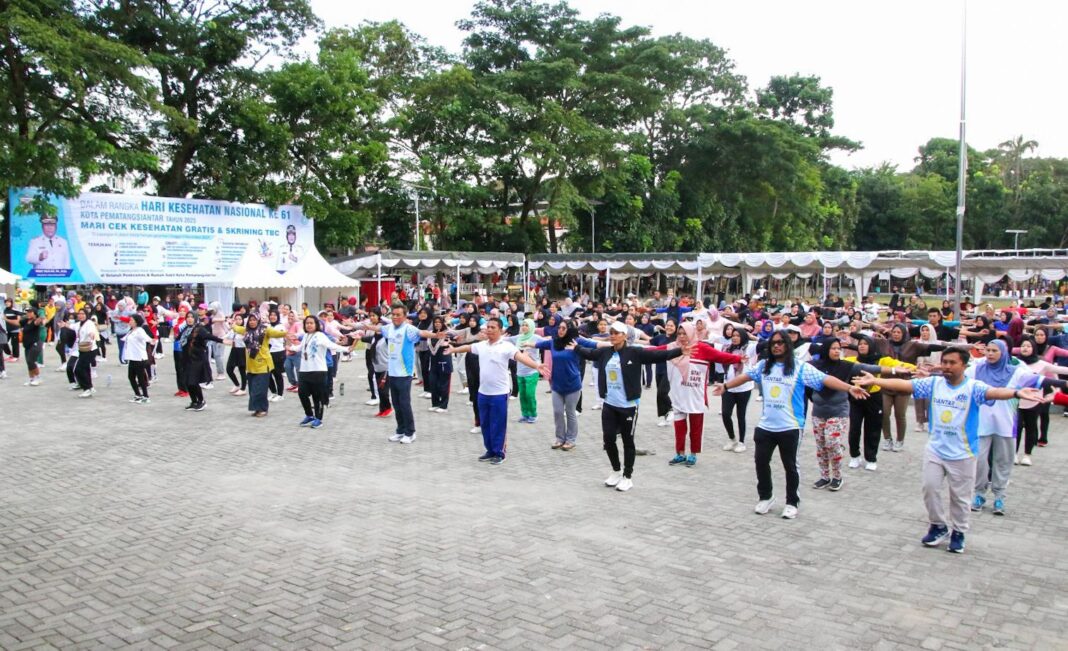 MUDANEWS.COM, Pematangsiantar – Wali Kota Pematangsiantar Wesly Silalahi SH MKn yang diwakili oleh Sekretaris Daerah Junaedi Sitanggang SSTP MSi tampak memeriahkan dan senam bersama di Car Free Day dan Siantar Fun Run 10 KM, di Lapangan Haji Adam Malik, Kecamatan Siantar Barat. Minggu (09/11/2025).