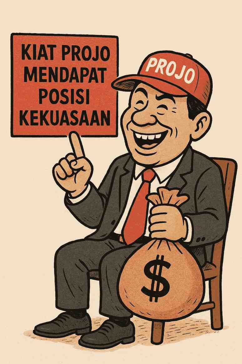 Di sekelilingnya, gerbong Projo juga ikut menikmati limpahan posisi: dari kursi komisaris di BUMN, jabatan di deputi kementerian, hingga berbagai proyek strategis pemerintah. Relawan yang dulu mengibarkan idealisme rakyat kini menjadi bagian dari struktur kekuasaan yang dulu mereka bantu menegakkan.
