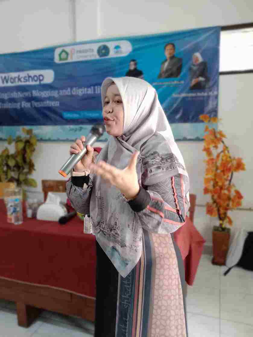 Sesi pertama membimbing santri menulis berita dalam Bahasa Inggris dengan struktur dan gaya profesional. Pada sesi kedua, Prof. Gufron memandu peserta membuat akun blog, mengunggah artikel, serta menyisipkan elemen multimedia seperti gambar dan video. Sesi ketiga yang dipandu oleh Ms. Tatu Zakiyatun Nufus fokus pada journal writing, melatih santri mengekspresikan pengalaman belajar dan membangun kepercayaan diri melalui tulisan berbahasa Inggris.