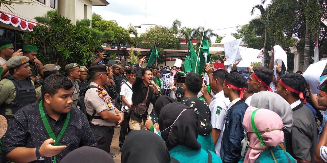 Massa aksi HMI Lhokseumawe beserta Ratusan mahasiswa dan pelajar, Senin (30/9/2019)
