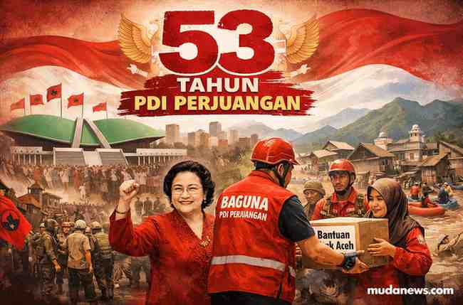 Mudanews.com Editorial | Tanggal 10 Januari 2026 menjadi penanda penting bagi Partai Demokrasi Indonesia Perjuangan (PDI Perjuangan). Di usia ke-53, partai ini tidak sekadar merayakan usia, melainkan meneguhkan kembali jejak panjang perjuangan politik yang lahir dari tekanan kekuasaan, konflik internal, hingga ujian pengkhianatan di tengah kekuasaan.