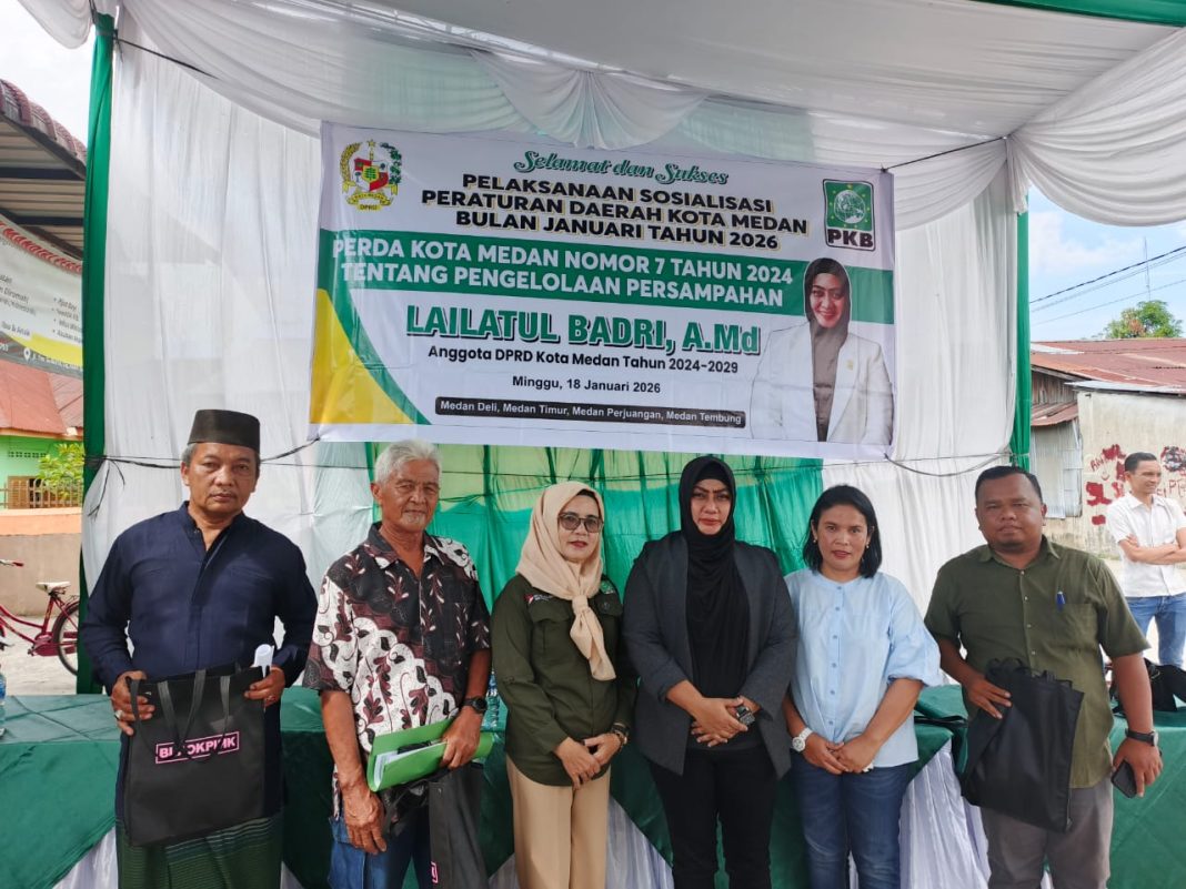 Ajakan tersebut disampaikan saat pelaksanaan Sosialisasi Peraturan Daerah (Sosper) ke I Tahun 2026 tentang Produk Hukum Pemerintah Kota Medan, yakni Perda Nomor 7 Tahun 2024 tentang Perubahan atas Perda Nomor 6 Tahun 2015 tentang Pengelolaan Persampahan, yang digelar pada Minggu (18/1/2026) di Jalan K.L. Yos Sudarso Lingkungan 7 Gang Rakit Km 7,1, Kelurahan Tanjung Mulia, Kecamatan Medan Deli.