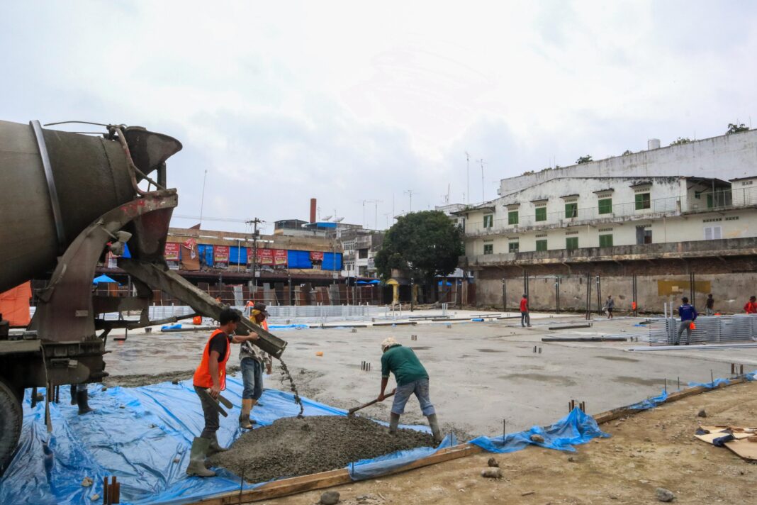MUDANEWS.COM, Pematangsiantar – Pembangunan kios darurat Pasar Horas di lahan eks Gedung IV sudah memasuki minggu kedua. Pengerjaan lantai sudah sekitar 1/4 dari seluruh areal dan mulai dilakukan pembuatan kanopi. Seluruh pengerjaan ditarget selesai sebelum Natal 2025.