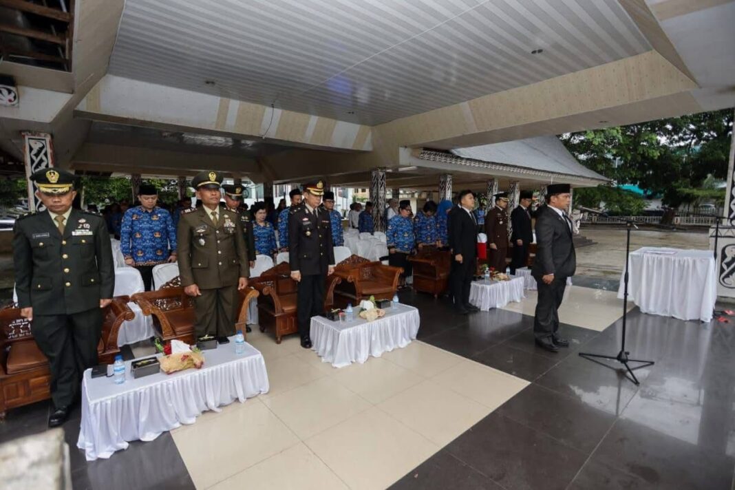 MUDANEWS.COM, Pematangsiantar – Di tengah guyuran hujan, upacara Peringatan Hari Kesaktian Pancasila Tahun 2025 di Kota Pematangsiantar tetap berlangsung di Lapangan Adam Malik, Rabu (01/10/2025) pagi. Upacara dipimpin Inspektur Upacara Junaedi Antonius Sitanggang SSTP MSi, yang juga Sekretaris Daerah (Sekda) Kota Pematangsiantar.