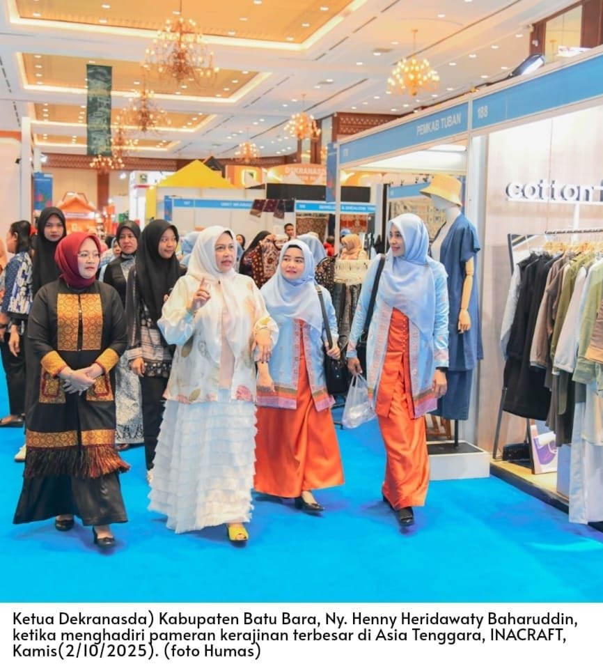 Mudanews.com- Jakarta | Ketua Dewan Kerajinan Nasional Daerah (Dekranasda) Kabupaten Batu Bara, Ny. Henny Heridawaty Baharuddin, menghadiri pameran kerajinan terbesar di Asia Tenggara, INACRAFT October 2025 Vol.4 yang resmi dibuka di Jakarta International Convention Center (JICC), Kamis (2/10/2025).